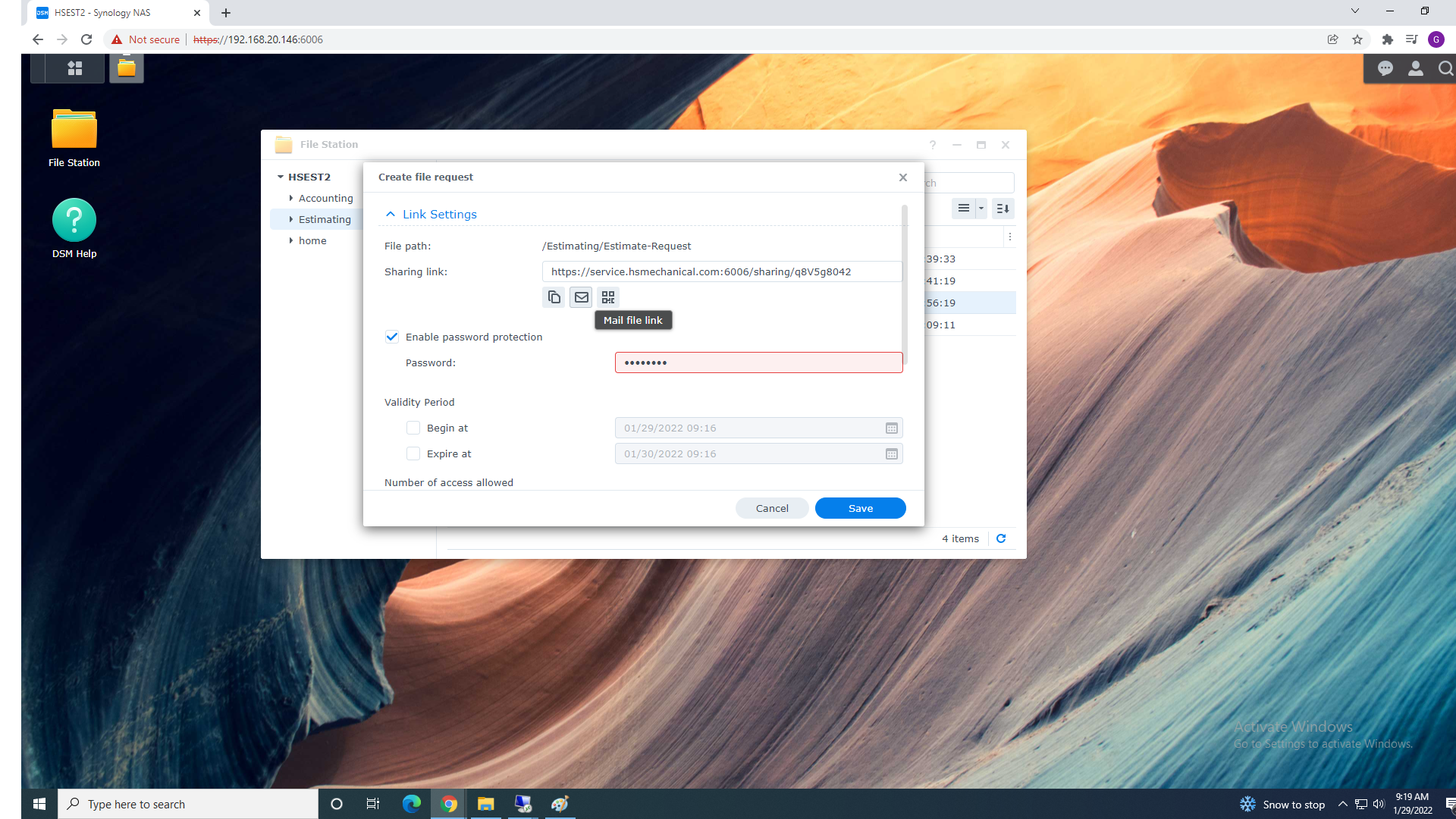 Note: You will need to provide the password to the person you creating file request for
