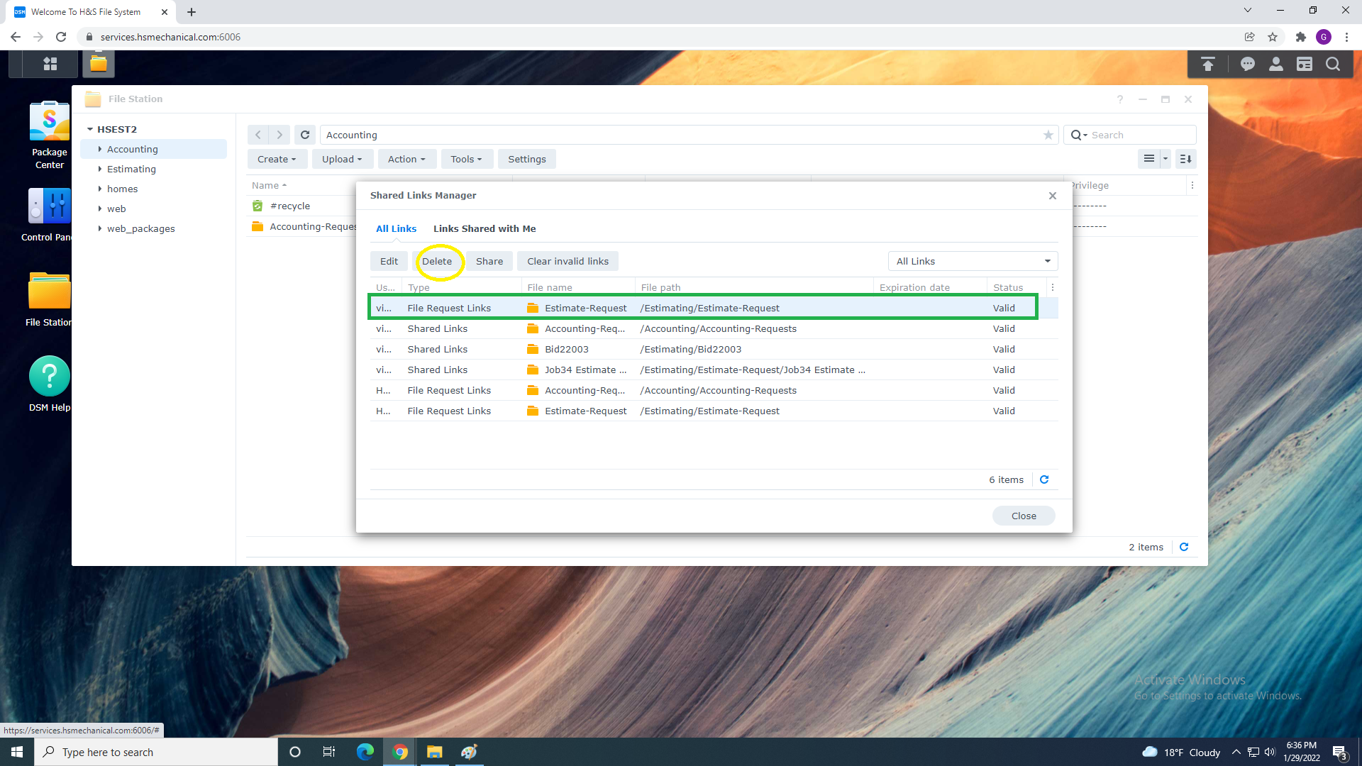 4. Verify/ Confirm Prompt that you are sure to Delete Link